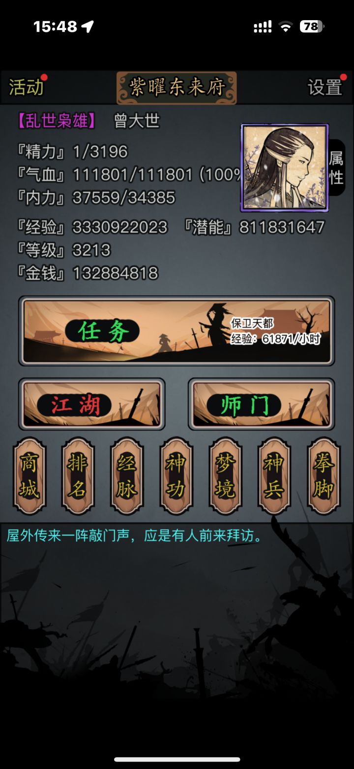 欢迎各位还活着的老马服伙伴加入,没号活跃的,有号的想喝茶的,还在玩咸鱼的,都来一起玩 #放置江湖 #放置江湖qq群 #放置江湖iOS老马