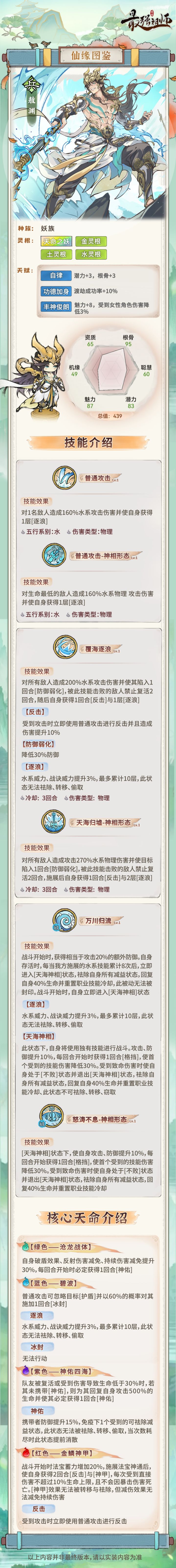 0 引言千呼万唤始出来。经过2个半月的沉淀,阿祖也是终于抬出了新的一个仙缘弟子-敖渊。和龙人龙敖天一样同为龙族,也是兵修,也能变身。有些小伙伴戏称他们为龙大,龙二。挺亲切的,不过敖渊听到可能不会很开心。目前兵修仙缘神话弟子合起来有4个了,超过剑修成为仙缘弟子最多的职业。那么相比前任兵修弟子,银无月,敖天,凤里牺。新弟子敖渊到底如何?经过两天的测试,老秦目