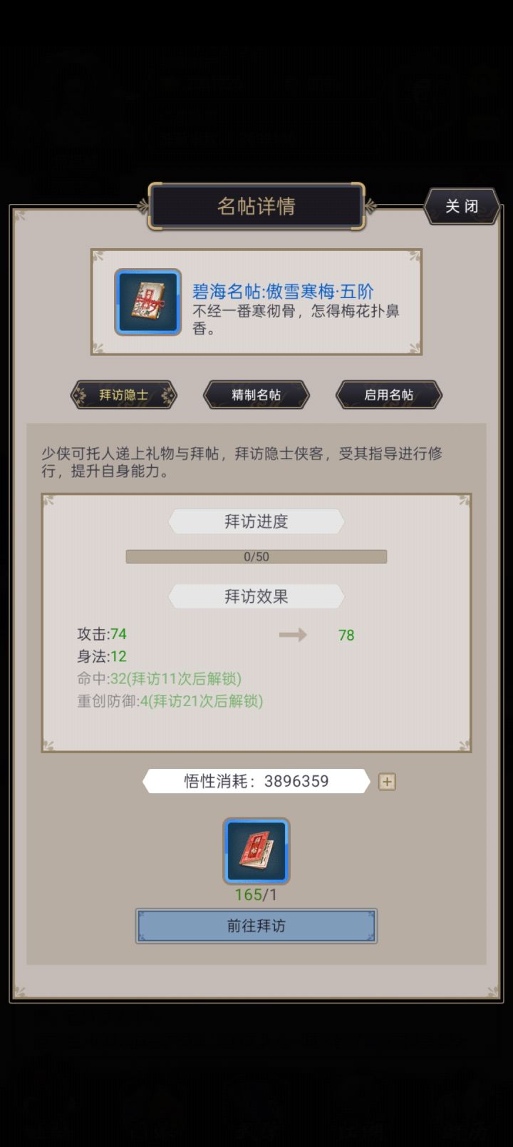 大佬们,那个名帖,先拜访再精致和先精致再拜访。数值增加的一样吗?#名帖 #这就是江湖 #数值