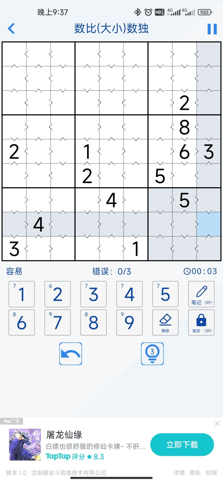 数比数独已上线,依靠相邻位置的数字大小关系来判断,欢迎体验#数独#数独技巧#攻略