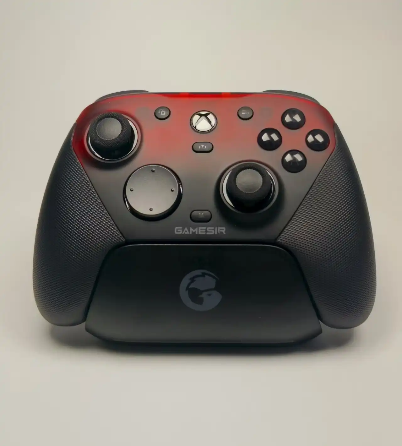 有一说一,澳加狮的手柄颜值在整个手柄领域当中都是首屈一指的。炫酷的灯光设计搭配上富有科技感的外观,俘获了一众玩家的芳心。对于NS玩家,澳加狮J20骑士可以称得上是Joy-Con的首选平替选择。 由于NS手柄体型较小,所以这款手柄在外包装上也做了简化设计,包装盒风格虽然是澳加狮一贯的产品风格,但是体积很小,并且在正面印着手柄实物图与型号标识。 产品也非常简洁,内含左右分体手柄以及硬质收纳盒。其中充电