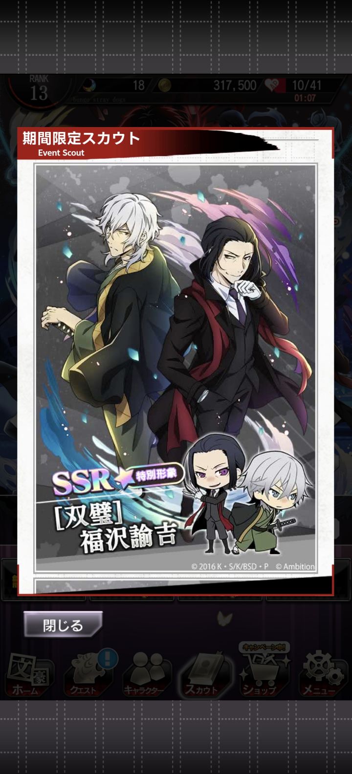 佛了,今天想回坑一下发现繁中关服了,陆版估计更难了,我去日服重新开始肝了#文豪迷犬怪奇谭