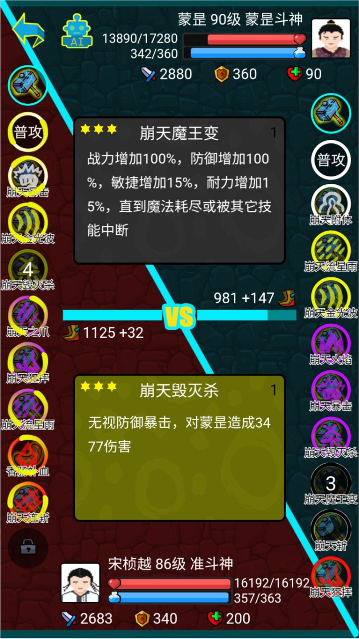 加属性的技能都是有冲突的呀,例如金刚变,魔王变,附体,还有很多辅助技能,加战力,加防御等等。再给开发者一个建议,能不能把状态栏加上去,比如金身剩余回合数,还有敌buff。再催一下快点更新,多加一些挑战,#斗神大陆