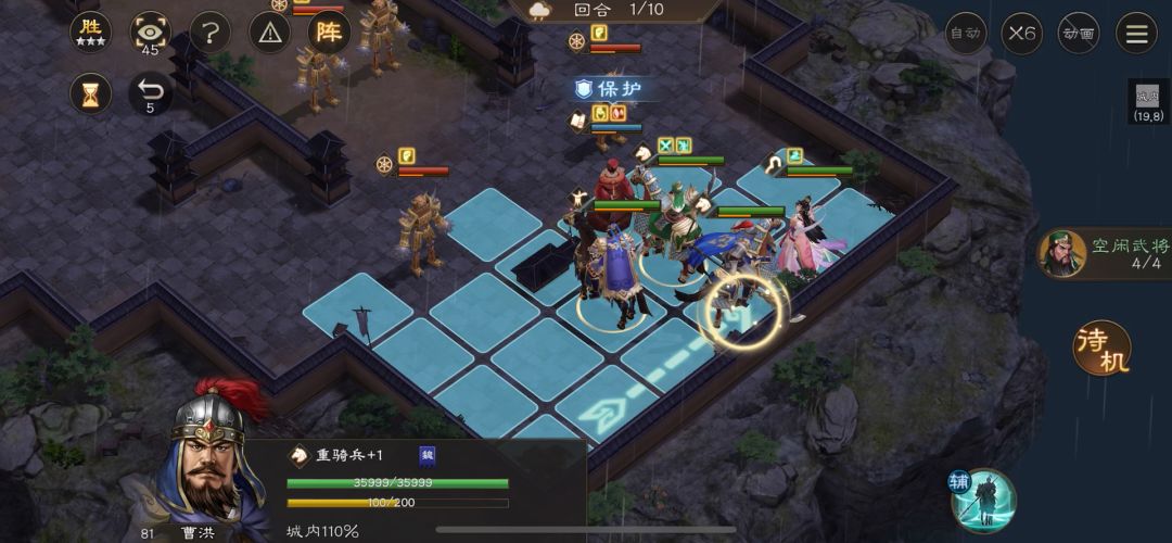 这关3🌟有几个点需要注意。 一是曹操要放出来疾行增益 二是在二回合的时候控制曹操,不让曹操与其他人相邻 三是控制最前面的骑兵 只需要动周仓,高览,夏侯渊即可。 #新三国志曹操传创作者征集令
