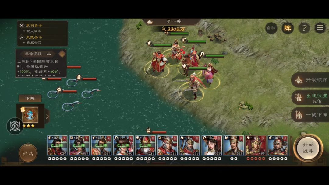#新三国志曹操传创作者激励 【推荐阵容】 吕布、诸葛亮、郭嘉、周瑜、貂蝉 【神兽要求】无,选增伤最多的那个上场就对了! 【符文配置】 • 周瑜 & 郭嘉:各携带1套吸血符文 • 其余武将:全输出符文 【操作要点】 1. 利用敌方攻击机制:敌军会优先攻击范围内防御力最低的单位。 2. 防御排序控制: • 周瑜必须保持全场防御最低(可直接卸除防御装备达成) • 貂蝉保持第二低 • 郭嘉保持第三低 3
