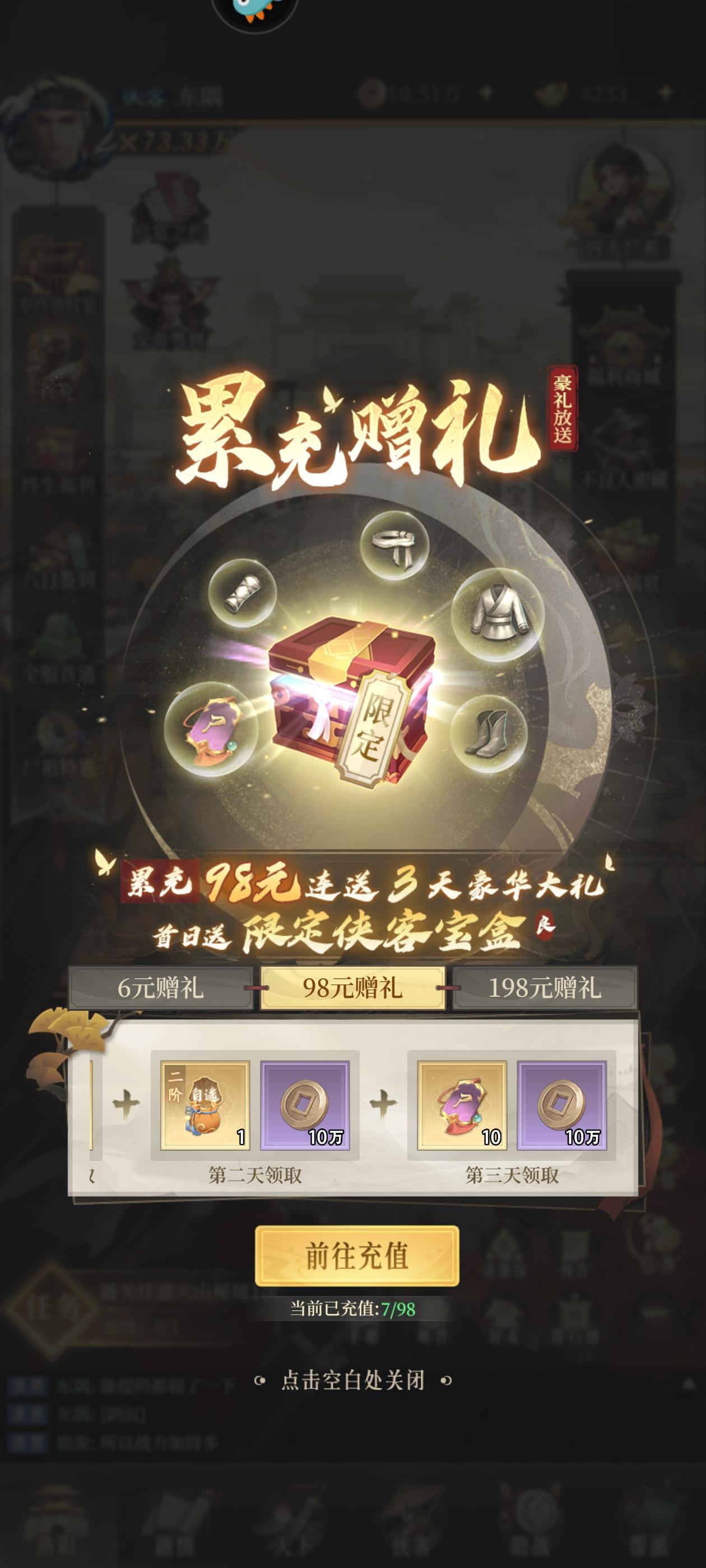 首充党开服第六天(多一块是买了个一元礼包),玩的气宗,想问一下我这个阵容后期强度怎么样,还有李存礼跟女帝带什么武器合适,求大佬给点建议#新不良人
