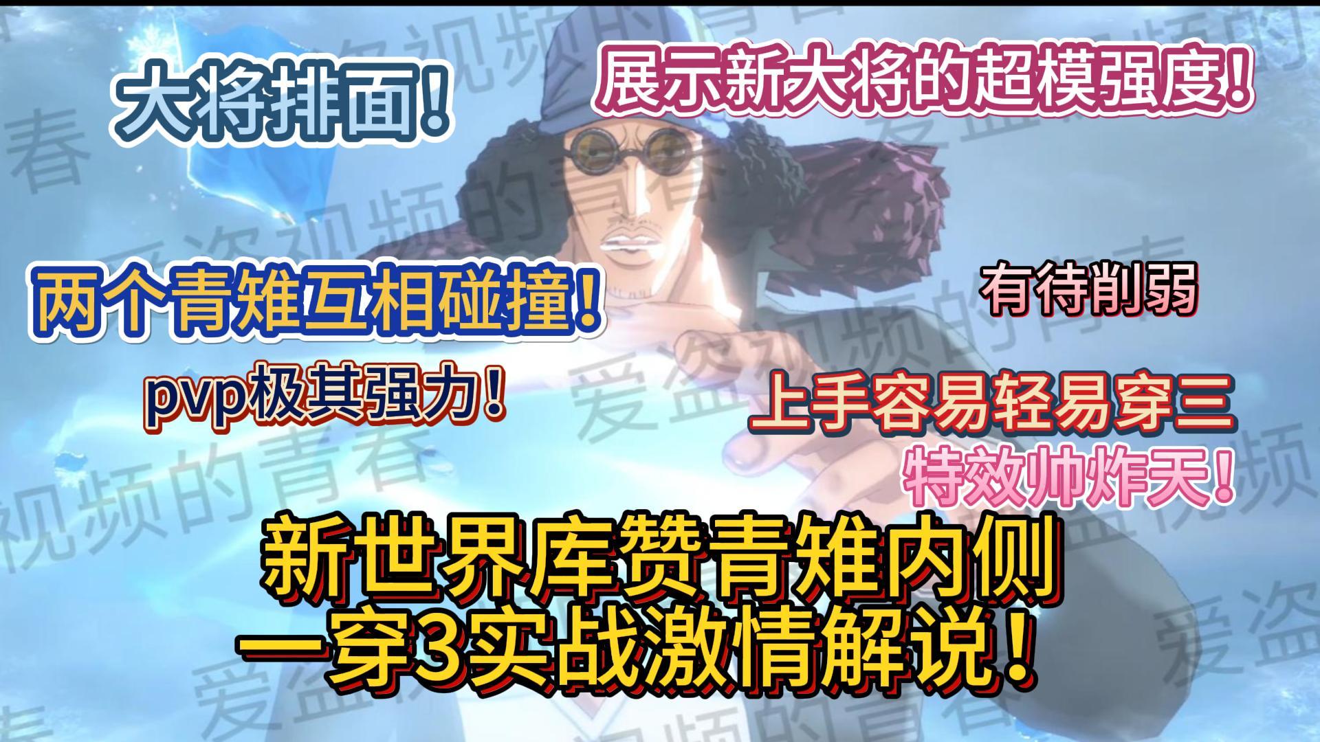新世界库赞青雉内侧一穿3实战激情解说!展示新大将的超模强度!两个青雉互相碰撞!pvp极其强力!上手容易轻易穿三,有待削弱,特效帅炸天!互相射冰!【航海王热血航线】