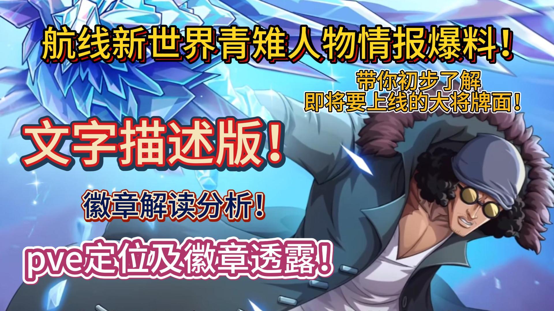 航线新世界青雉人物情报爆料!pve定位及徽章透露!文字描述版!带你初步了解即将要上线的大将牌面!徽章解读分析!【航海王热血航线】