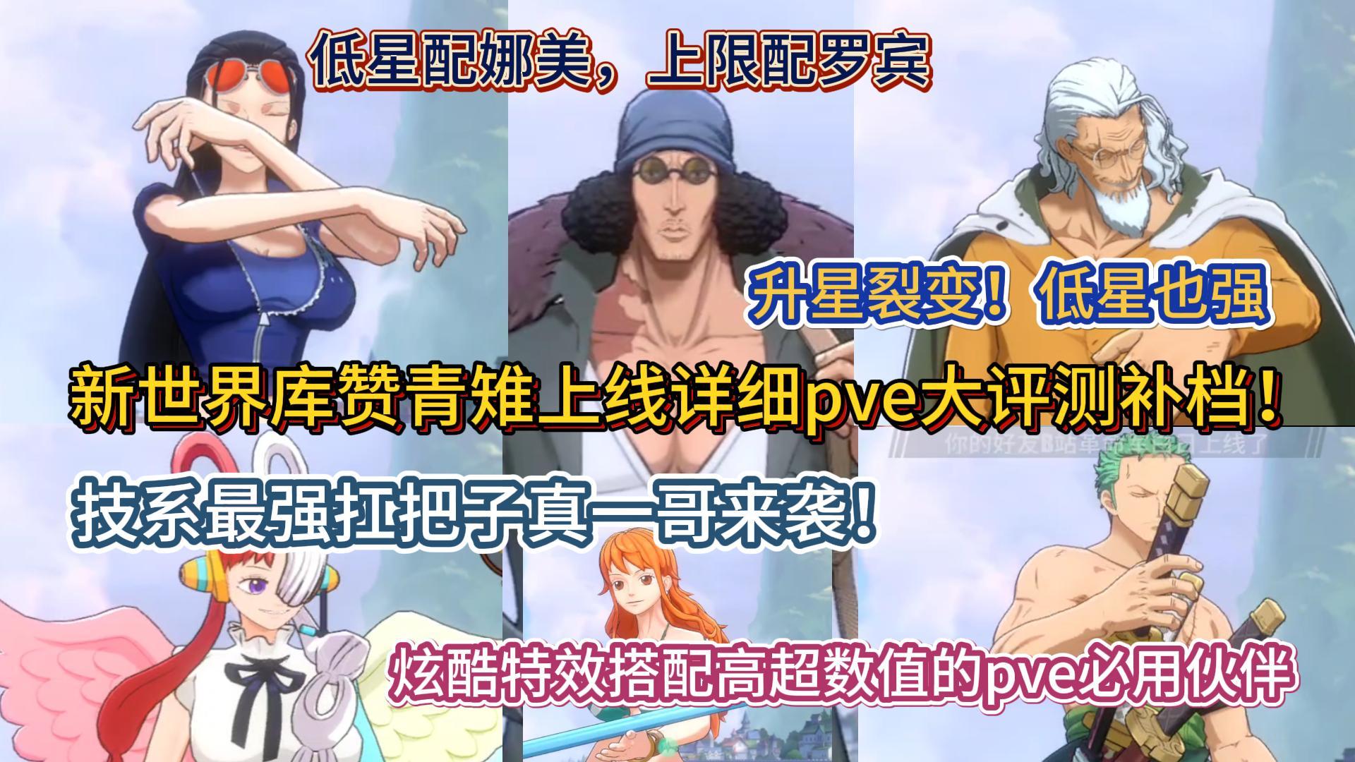新世界库赞青雉上线详细pve大评测补档!技系最强扛把子真一哥来袭!升星裂变!低星也强,炫酷特效搭配高超数值的pve必用伙伴,低星配娜美,上限配罗宾【航海王热血航线】