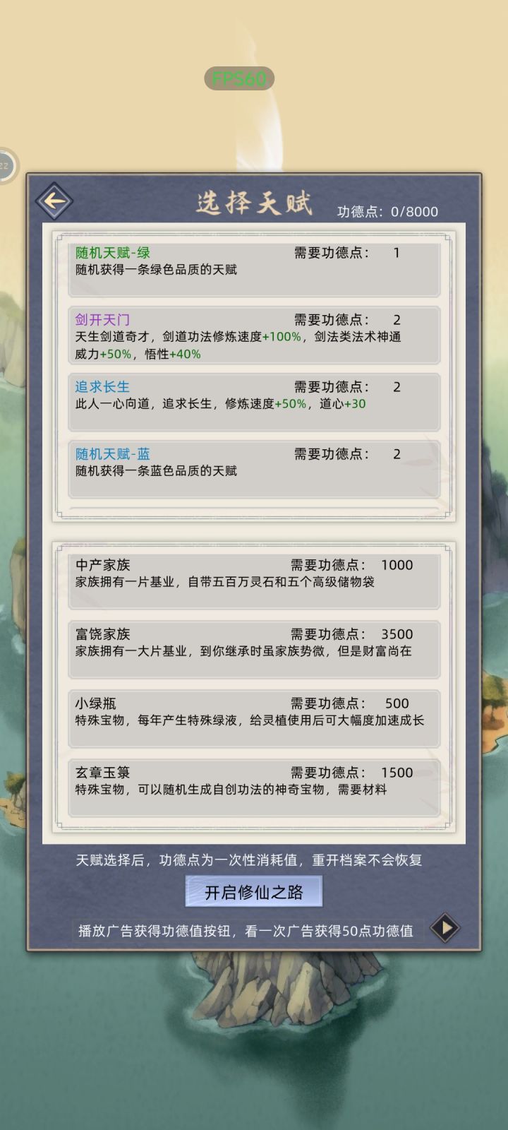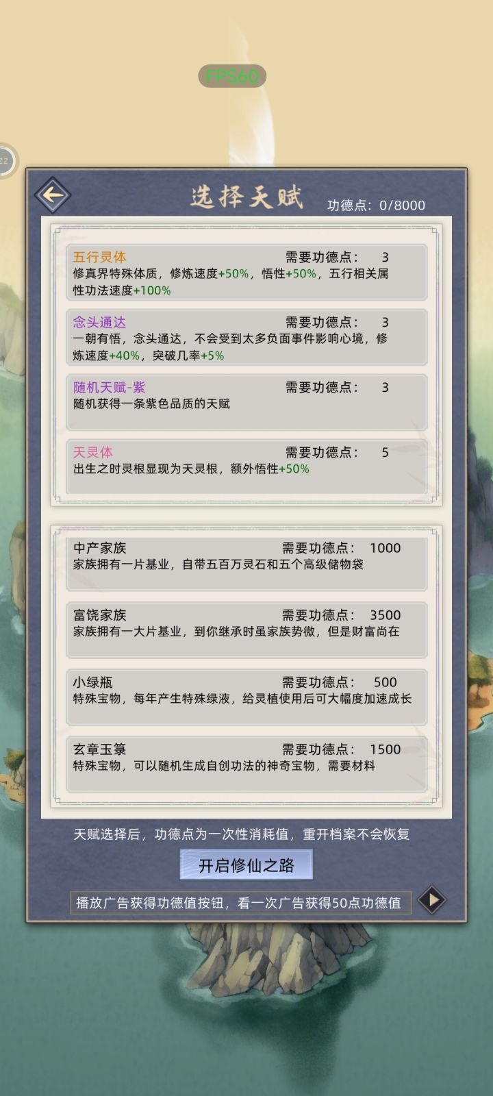 新人求教。看广告拿了8000功德点,家族这五个都选了,【主角天赋】五项应该选哪些?✔筑基弟子✔稀世功法✔富饶家族✔小绿瓶✔玄章玉箓#新人求助