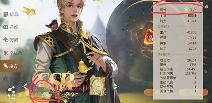 1.图1伙伴能力旁边的问号可以点开,查看伙伴的属性能力等等。2.图2与图3查看对应属性,命石也应对应属性,这样才会有属性加成。3.图4升星与强化命石(即合成与洗练)可以提升命石能力(橙色条最高),从而提升伙伴能力。4.图5左边商战:每天3次,每周六天,周日结算(而商会世界订单周一结算);右边寻宝,每天2次。 #新庄园时代攻略 #新庄园时代 #新庄园时代攻略