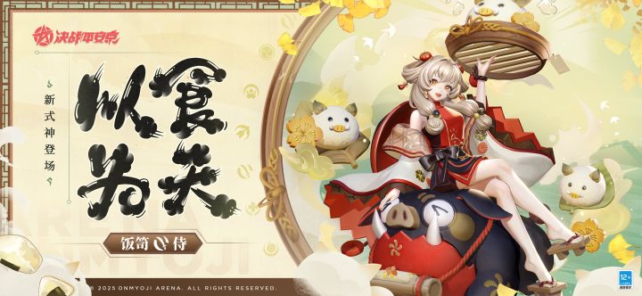 #决战平安京 #新式神情报 热火朝天,锅碗瓢盆碰撞清脆, 有条不紊,油盐酱醋调制百味, 置身灶火炉烟的少女探头招呼, 丰膳珍馐备齐,尽情大快朵颐! 全新【侍】类式神「饭笥」将于1月24日维护后正式加入平安京战场! ▷技能设计思路 忠于“吃饱才是正事”的原则,传说中的食之神明少女带着她的小猪“五花”来到了平安京的战场!怀揣着吃遍天下美味的美好愿景,饭笥和她的小猪为了消灭世间的饥饿而四处奔走,不