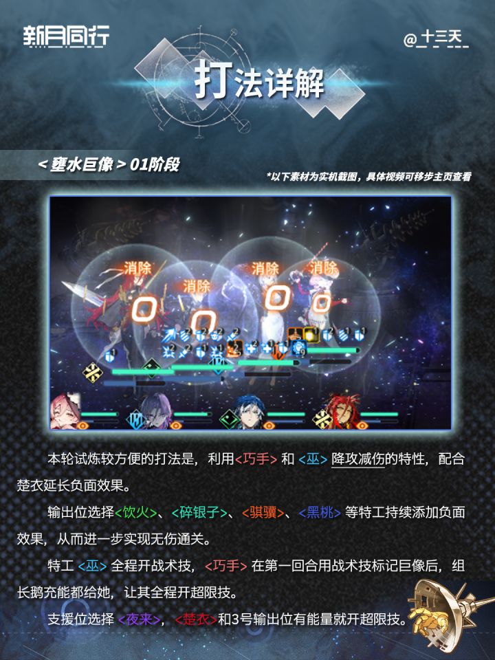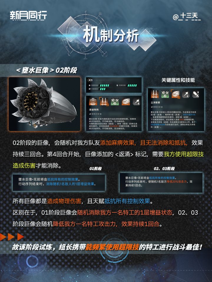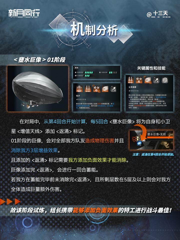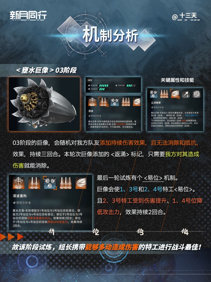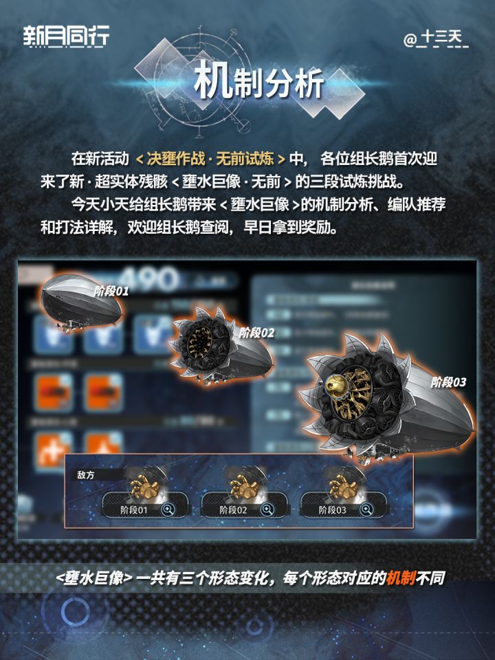 各位组长鹅大家好~我是小天,祝大家端午节假日快乐~<往像螺旋> 活动已经开启了,不知道大家跟 <壅水巨像> 战斗的如何了呢?欢迎评论区告诉我~今天给各位组长鹅带来《决壅作战550分通关手册》,帮助大家拿到 <忘湖> 门阶钥匙和绝版名片活动奖励,感兴趣的组长鹅敬请查阅噢!| 机制分析 | 基于活动内容解析,欢迎捉虫~| 编队推荐 | 为最速通关阵容,