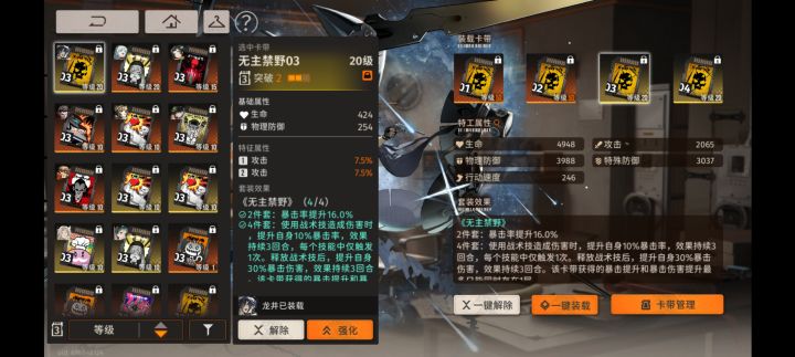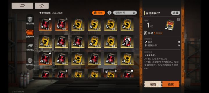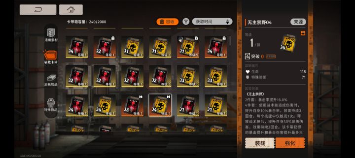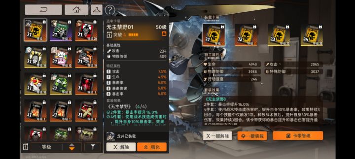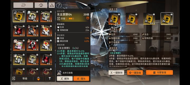 输出位置5星卡带1/2号不要强化超过20级,因为反吃会返还升级材料。5星3/4号位置只建议强化2过渡,副属性随机到攻击21~35/攻击加成4.5%~6%/暴击3.6%~6%/暴击伤害3.6%~6%刷几次卡带5副本会给很多5星卡带,3/4号位置可以吃1/2号位置刷副词条不满意就反吃(回收也可以)升级材料全部返还只消耗5星卡带。同理6星卡带溢出你甚至可以拿6星卡带来刷副词条,前期体力少不建议拿6