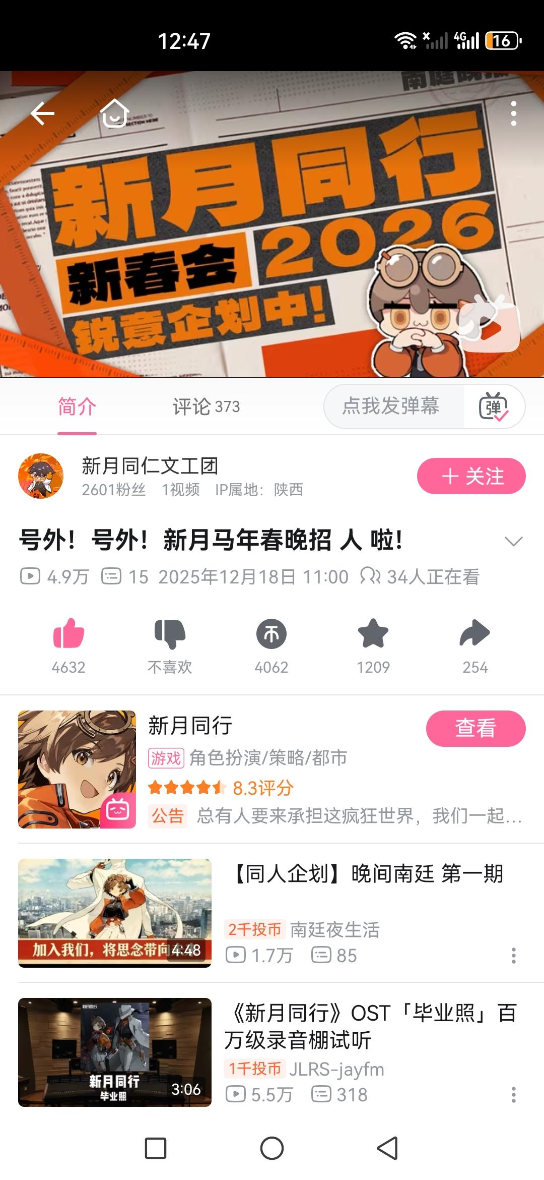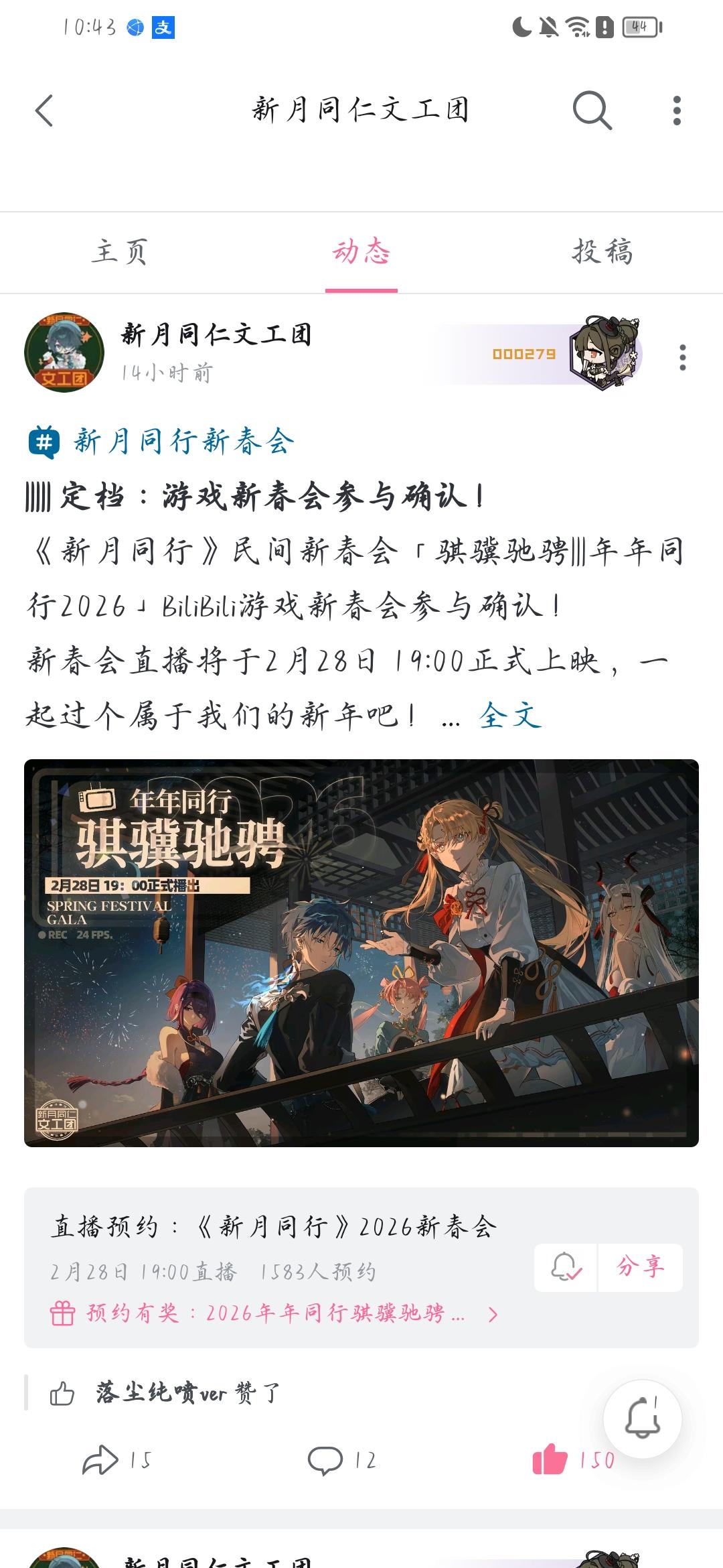 1月20日,《新月同行》玩家团体【新月同仁文工团】发布动态,确认其自发筹备的民间新春会「骐骥驰骋|||年年同行2026」将登上B站游戏新春会,直播定于2月28日19:00正式开启 。《新月同行》已于2025年12月15日官宣永久停更,停更原因包含二次元游戏品类剧变、运营成本持续走高、项目成绩未达预期。停更后游戏虽可正常登录体验,但已停止全平台充值、注册及下载入口服务。本次民间新春会由玩家自发组织