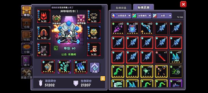第一次玩我的勇者还是在高一,那个时候游戏也刚出没多久,入坑晚的我看着大佬们的南瓜灯武器羡慕的要死,也不知道如何搭配BD获得限定武器,当时只有三元素240层的小秘境,最印象深刻的就是看B站的那些大佬用拔刀忍1200亿总伤害极限卡时间通关了240层并且展示一背包的5星武器留下羡慕的眼泪,而我抄着视频攻略玩起了列拉金的海战,可是因为当时的装备需要打孔洗元素,我又黑的要死,导致伤害提不上去最终卡关退游了。