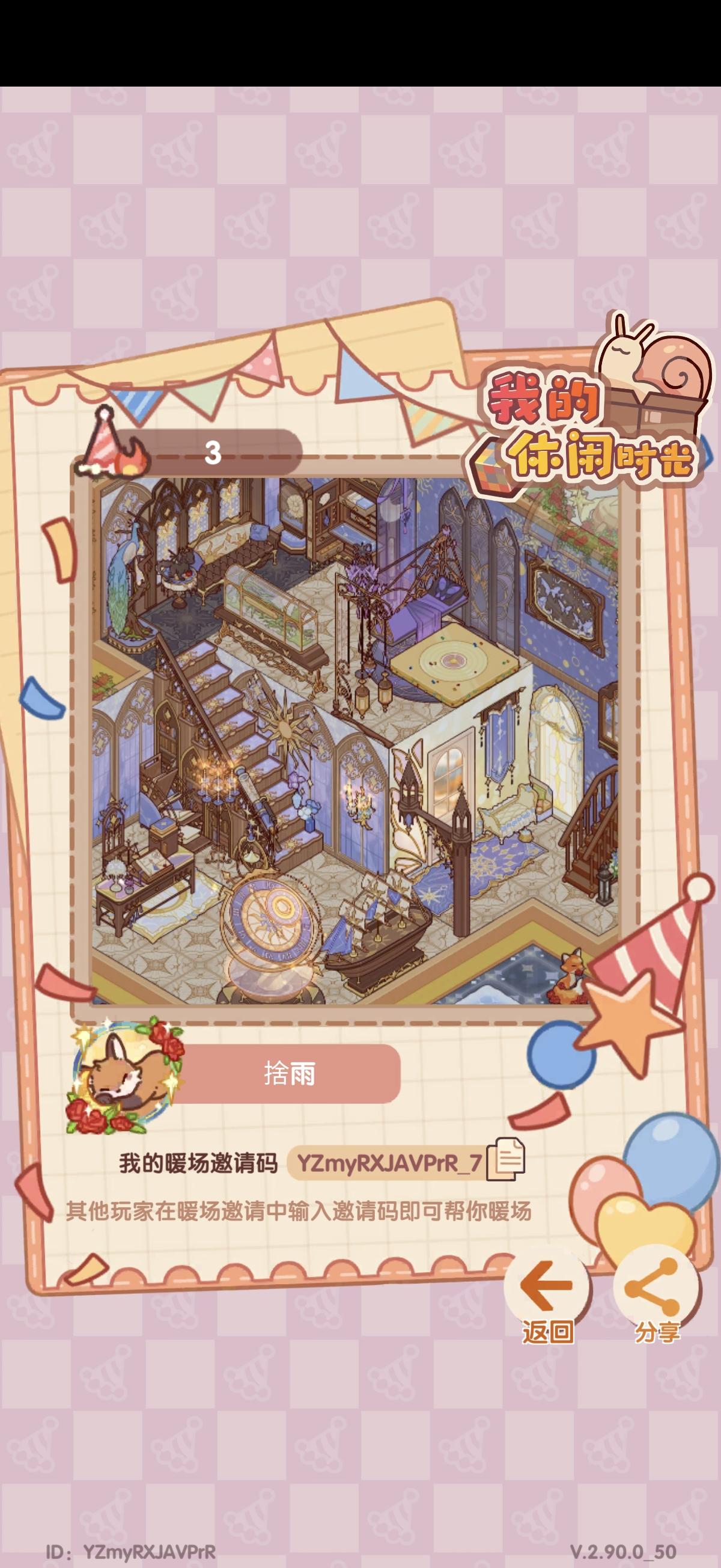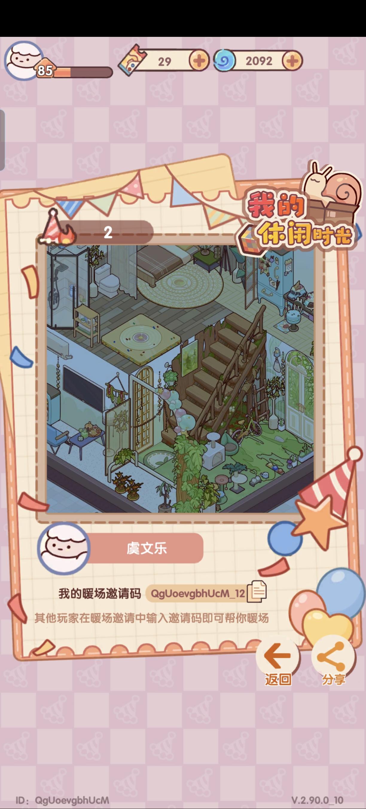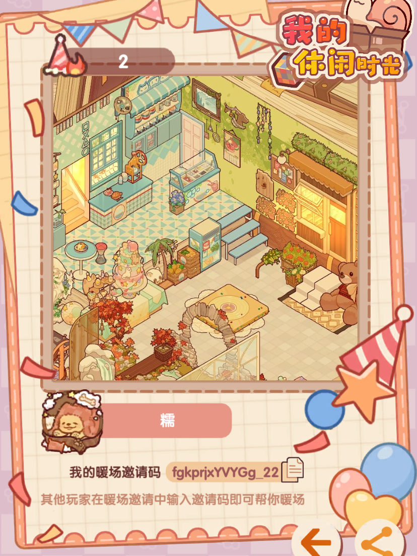 可加好友发或者邀请码发评论区 只要看到一定回暖(。・ω・。)#我的休闲时光 #新活动暖场派对 #我的休闲时光派对暖场
