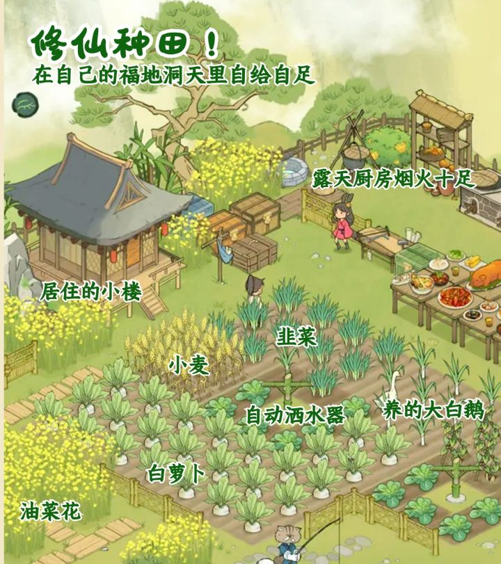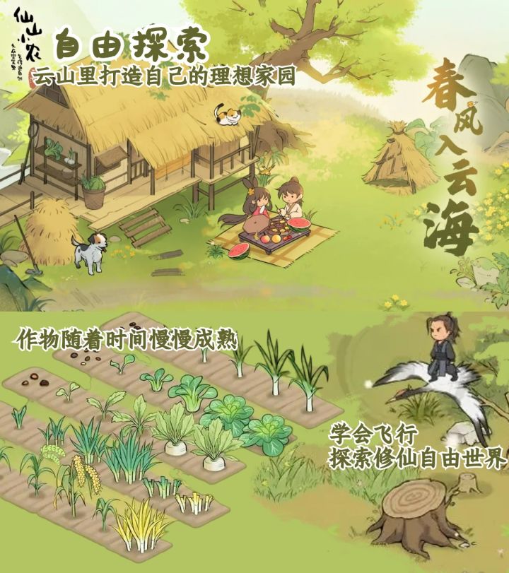 师尊:徒儿最近修为如何?我:今儿又多垦了6块地,养的4只老母鸡开始下蛋了,明天韭菜成熟了割完给师尊您包饺砸!师尊:?游戏名《仙山小农》,玩家作为新入门的修仙弟子,才入宗门,就发现一片狼藉的山头,在师姐的指引下,需要不断修缮设备,开垦土地,种田养殖,最终把自己的小山打造成繁荣安宁的福地洞天——等等!!?我们不是来修仙的吗??游戏的亮点正是巧妙结合了种田玩法和修仙题材,种田的同时,你也需要增长