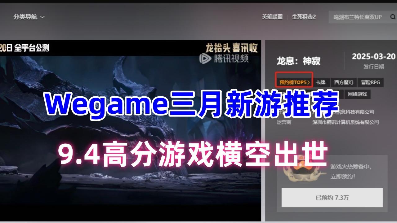 Wegame三月新游推荐,9.4高分游戏横空出世!