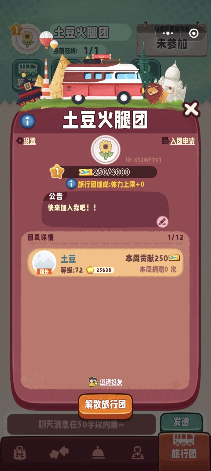 只有一个人的旅行团,试试有没有人愿意来Id:X5ZWF701#旅行团招人 #旅行串串旅团升级