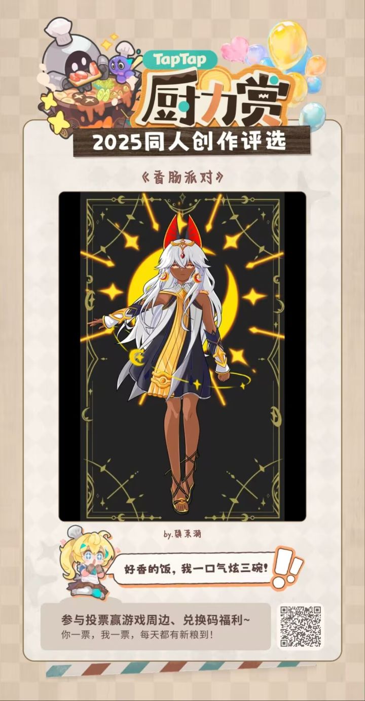 给我投过票的妹子或者兄弟,13日在此贴下发布历史票数截屏且在图片里备注tapID加派对ID(防盗用(不玩派对就不写)据票数梯度,人均可得无偿包括头像/胸像/立绘类型包括公仔人/QQ人/正比质量不会有浮动,可参考以往作品但是工期说不准以发布评论时间为准(可以现在就占楼,票选结束后发投票图即可)13日结算之后开始画#香肠派对 #同人二创 #发现好游戏 #无偿