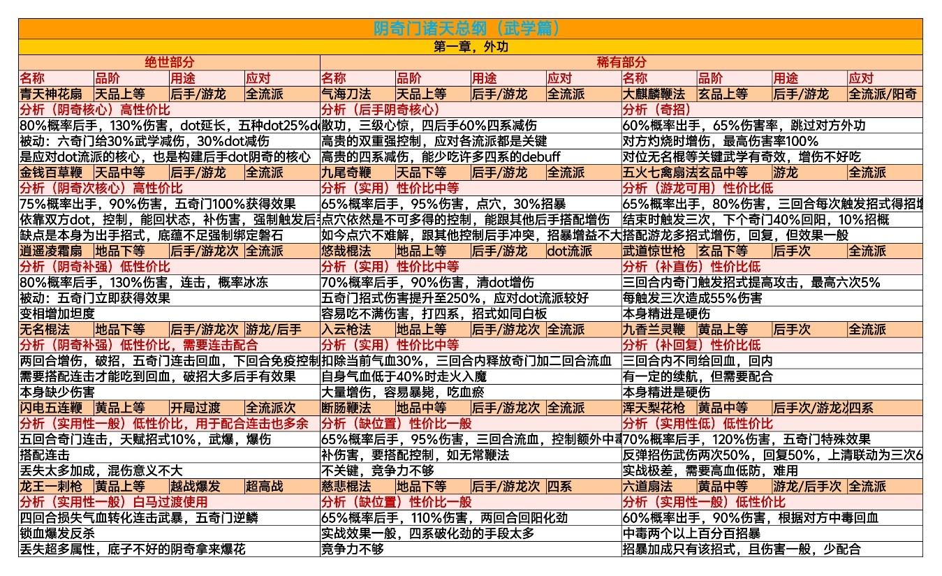 总结这段时间各式无名武学招式的上限,以及联动之后阴奇现状。削弱:无名棍法,天下为家破招使得在对战阳奇时胜率下降两成,回到了内息克制应该有的水平无名剑法,娑婆破狱式让阳刀阳剑得到增强,新区环境极为恶劣增强:无名棍法大佬的选择之一,在面对后手,游龙等阵容时效果不错,但是身为绝世,普通玩家毫无作用四劫绝式阴奇前期补强,在没有白马前阴奇主要依靠精进dot作为输出,后手的存在在应对四系时只是