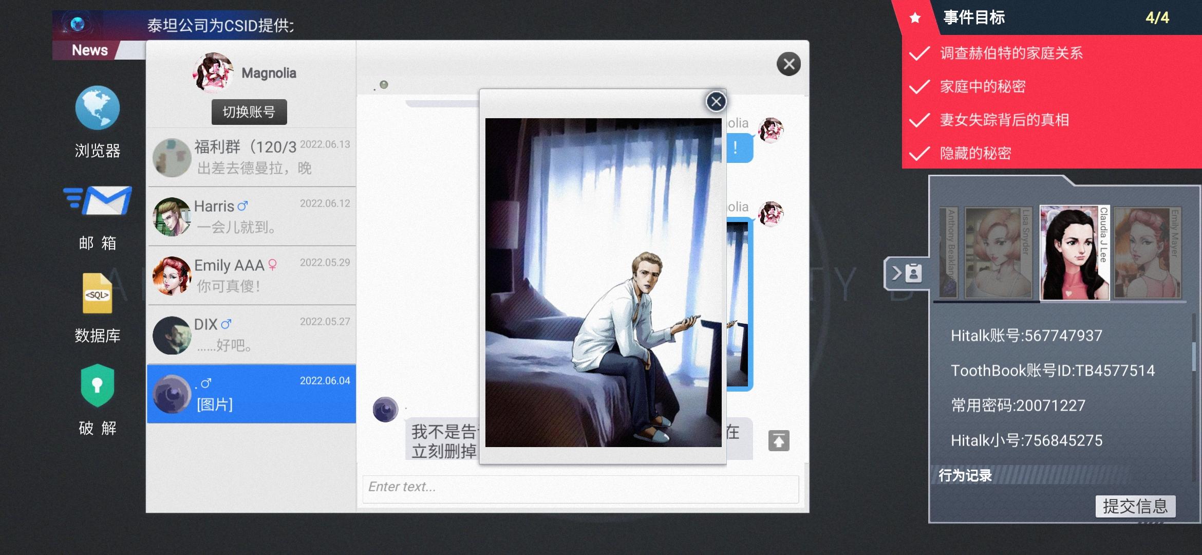 💡更多图文+视频攻略可搜公众号🔎迷失攻略组(也是第一时间放攻略的地方(^U^)ノ图文攻略↓↓↓第四章1.接听Ashley的来电,接下任务。2.打开邮件,收集线索【Barbie Saya】、【Coral Stock】、【AG03220000217213】、【财务专员】、【2021.10.12】、【Death on your way】。2.13.用浏览器搜索【Death on your w