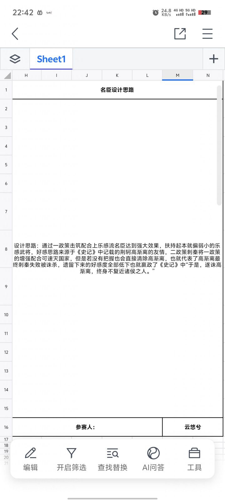 #无悔华夏名臣设计大赛 对游戏理解有限,仅个人观点,欢迎大家讨论哦微笑1.与荆轲政策相呼应2.补强用间流或军心流