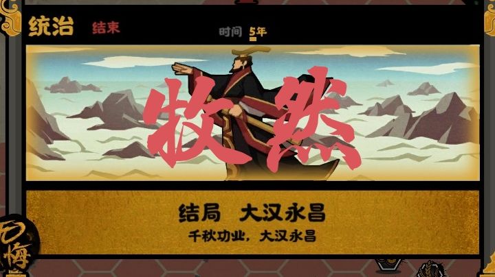 大汉永昌的结局+15000分,不是9000,西域都护府和匈奴远遁+9000分没盘子属实难受,想玩大汉的朋友我推荐你氪个盘子,不然太费时间(用道具了,10个都用了,用的大部分是烛龙之眼,没兵比较难)先说一下感慨,没盘子有点难,新资源有些难获得丝绸:布庄可以生产(布庄是据点),和亲用或者点政策用(比较容易,就是等待时间有点长)香料:比较难获得,前期没和西域联系前只有夜郎有(夜郎的专属政令,每