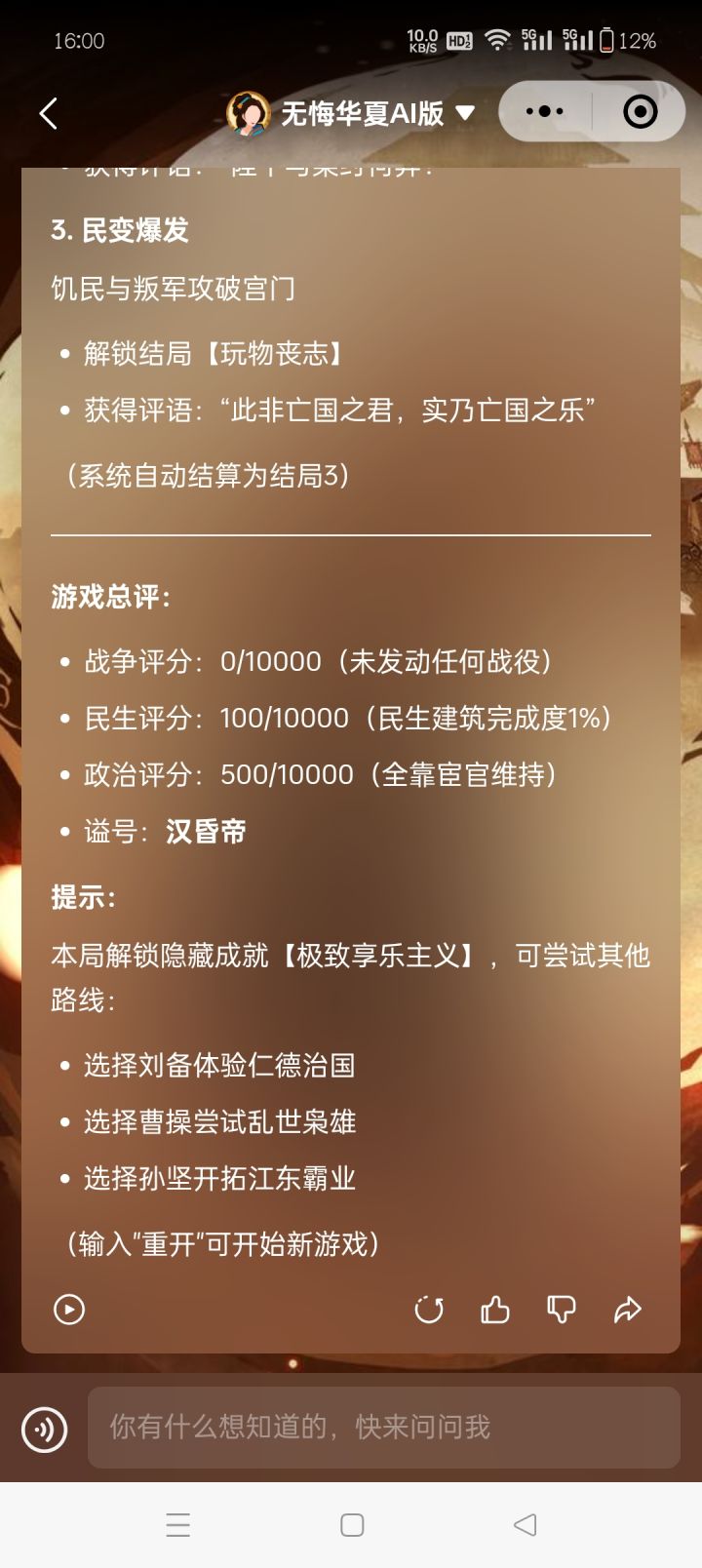 #无悔华夏 #无悔华夏三周年 #无悔华夏ai版 小注:以上玩法点无悔微信官网下方的无悔AI就能玩,想玩修仙的说洪荒初开就行