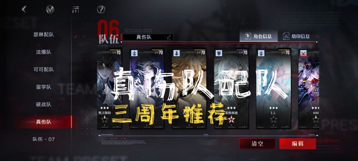 由于很多局长是新入坑,这几天也问了我好多关于配队的问题。针对当前卡池里的角色和强度我给大家带来一起真伤队的配队攻略。一.真伤队的核心角色奥古斯特:真伤队伤害核心,拥有强大的群体伤害,面对群怪环境体验极佳希格林德:战斗开始时10/20/30秒内,希格林德使1名释放必杀消耗【残锋】的友方禁闭者每秒获得1层【残锋】,优先选择攻击最高的友方禁闭者;自身必杀持续期间每秒消耗的【残锋】减少1层(至于这个