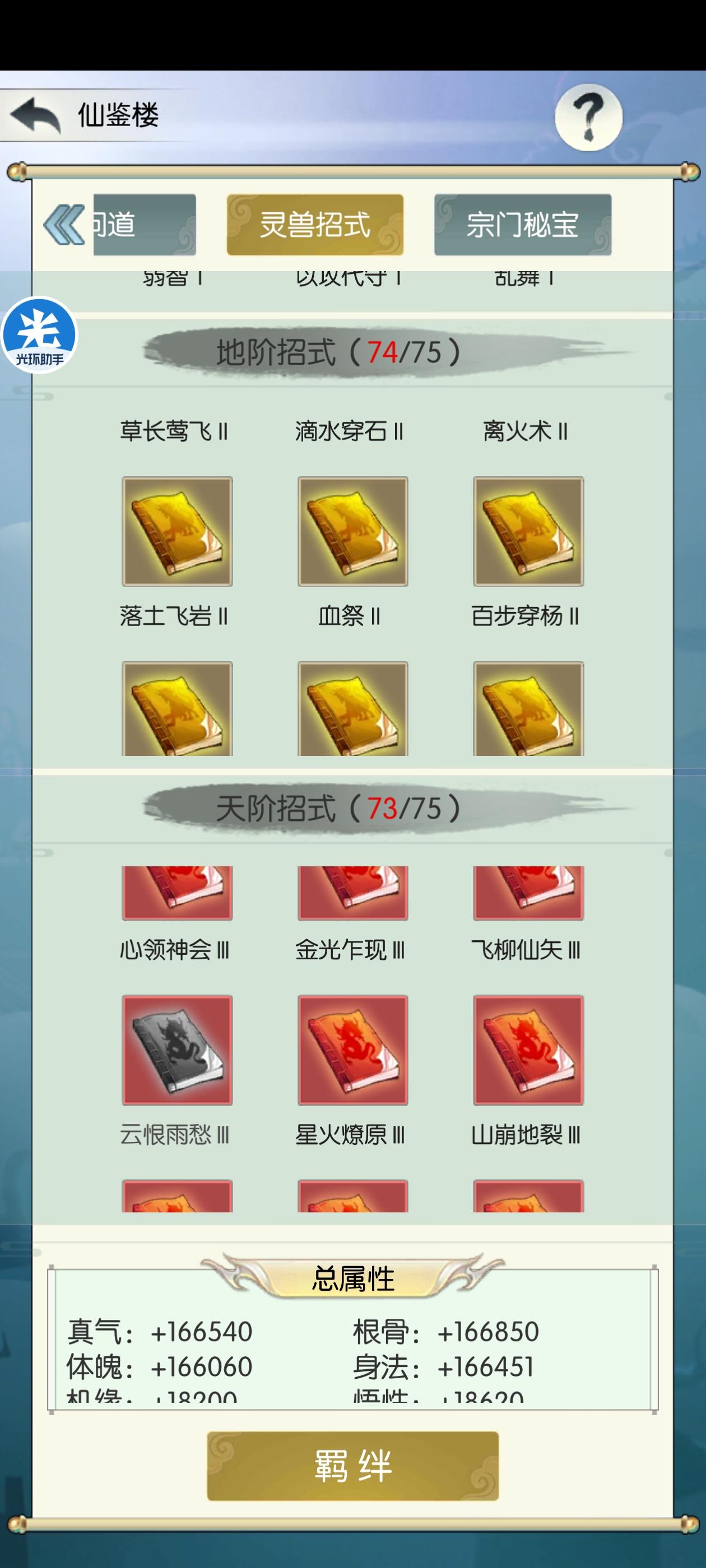 这篇攻略面向三元党想早点飞的新手,仅供参考。飞升从招式,灵兽,境界方面入手。日常区零氪能做到400年左右飞升。灵兽–目的是凑够十个不同的灵兽来领仙途里的500口粮,前期每一天都要用次数卡把狩猎拉满,看能否出鹿灵和吼。探索里把遗迹令牌留到炼虚选灵兽偏好,抽三百发收手,一般会出丛丛,九尾,牛牛,有重复的分解掉,出两个不同的即可。还可以抽到飞廉和炎虎,豹灵,没有的只能镇妖塔里换炎虎,幻尘石换飞廉和豹灵