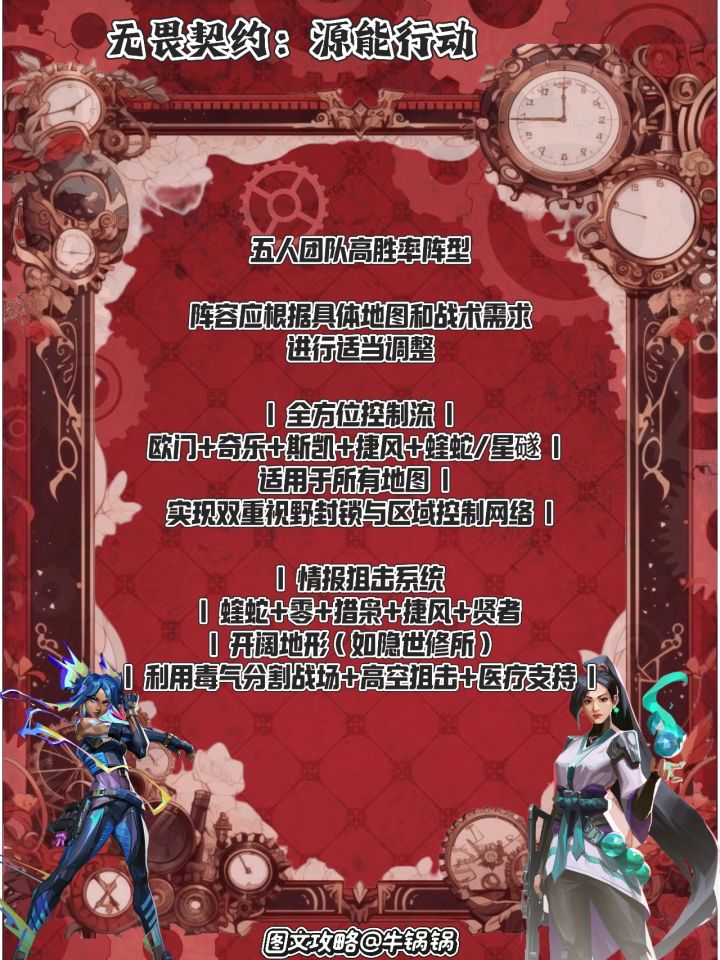 英雄选择决斗位:推荐蕾娜,技能治疗箭可保生存,大招“女王之怒”适合残局收割;还有不死鸟,火墙、火球技能能自保和干扰敌人,大招可在燃烧状态下尽情输出。控场位:蝰蛇的毒墙与蛇咬技能可封锁区域;还有幽影,烟雾可重复使用,适合控场和迷惑敌人。先锋位:斯凯能操控技能探察敌人位置,收集战场信息,还有闪光和治疗技能;另外,布雷奇的技能可穿墙爆炸、致盲和震荡敌人。哨卫位:贤者能治疗和复活队友,冰墙可阻挡敌
