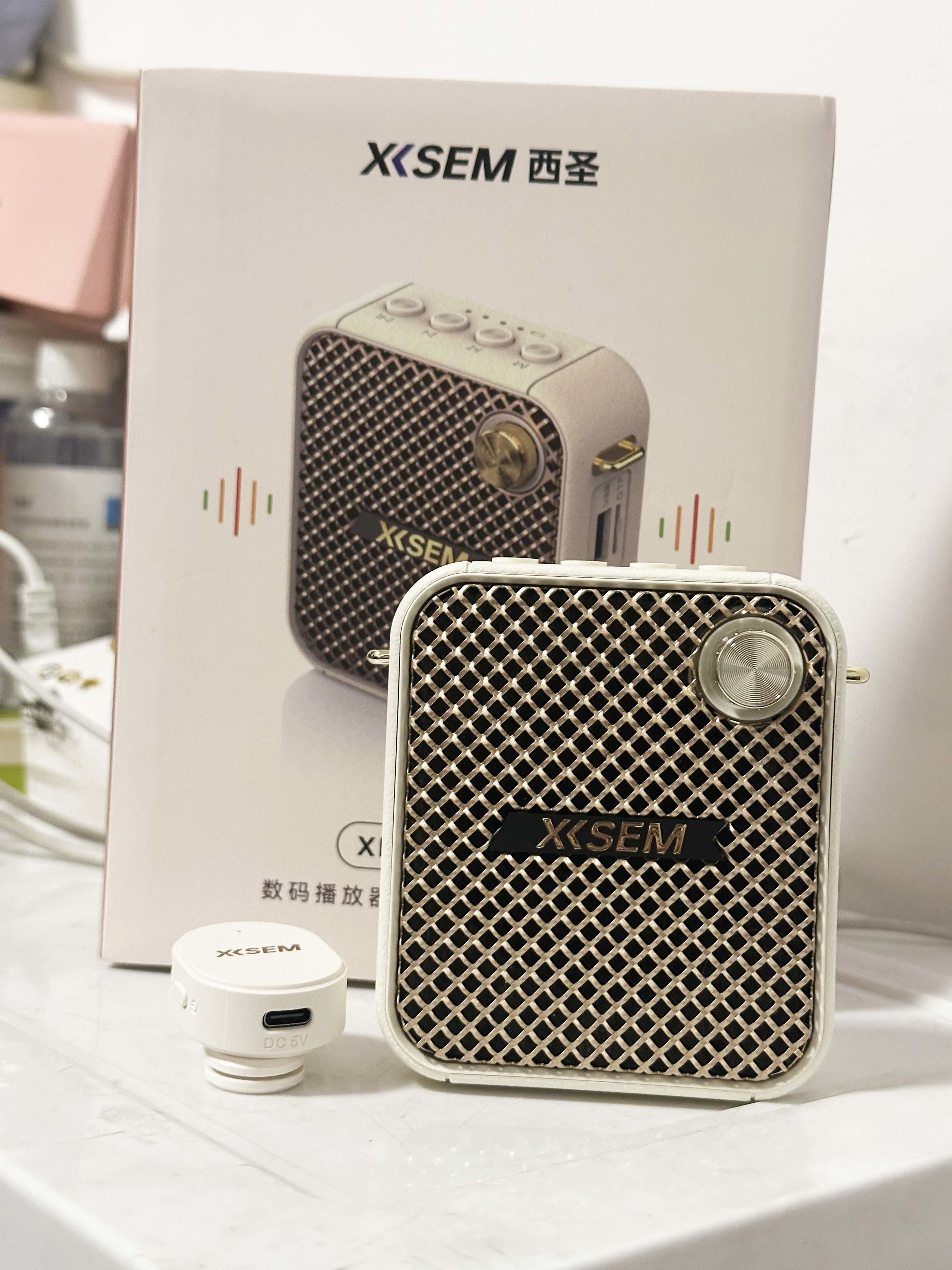 性价比这一块它真有点离谱,这次入的是西圣Bee小蜜蜂扩音器,机身巴掌大,戴着几乎没存在感,上课、带团、做讲解一整天都不会觉得累。最喜欢的是它的AI防啸叫技术,不管音量开多大都不会刺耳,声音干净又清晰,户外广场、教室这种环境都能hold住;音量够大但音质还挺细腻,说话一点不糊。续航方面也稳,我开中音档一天都不用充电,真·省心!关键价格还很友好,百元出头的价位能做到这种清晰度和稳定性,真没谁了