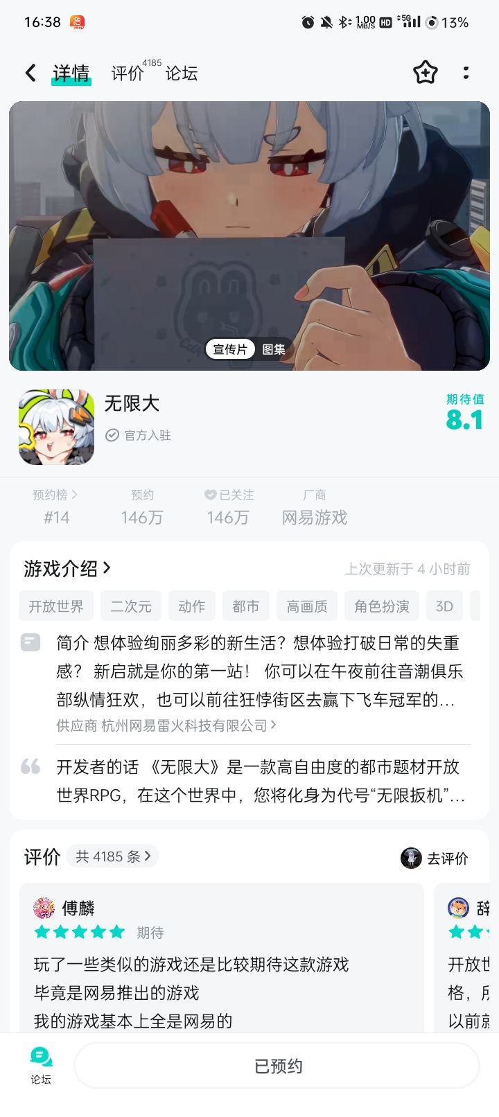 ♦网易的新游——都市题材二次元开放世界 ▶打破规则的都市开放世界 ▶二次元动作都市大世界想想就让你热血沸腾❗ ◆无限大是一款高自由度的都市题材开放世界 RPG,在这个世界中,您将化身为代号“无限扳机”的王牌调查员,肆意穿梭于世界的每一个角落。探索多样城市,结交各色伙伴,共同应对威胁人类安宁的异常现象。或与伙伴们享受城市生活,留下难忘瞬间. ✅喜欢的小伙伴下方【预约游戏】 ♥关注🐮锅锅