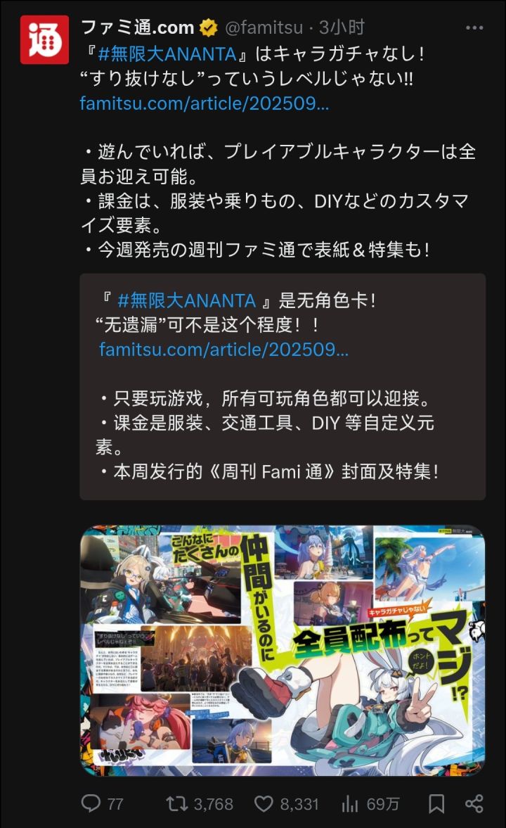 #今天游戏圈发生了啥 #资讯评论员 #无限大 #代号无限大 #无限大无角色抽卡 近日,网易旗下备受期待的开放世界新作《无限大》官方明确表示,游戏将不采用传统的角色抽卡机制,所有可操作角色均通过正常游玩解锁。其商业化重心将放在服装、载具、家居等外观定制内容上,感觉最近取消抽卡,选择皮肤等外观资源付费的二游有点多哈,先是二重螺旋,再是幻塔跃迁服,难道,难道说二游无抽卡会成为一个新的潮流吗据悉,《无
