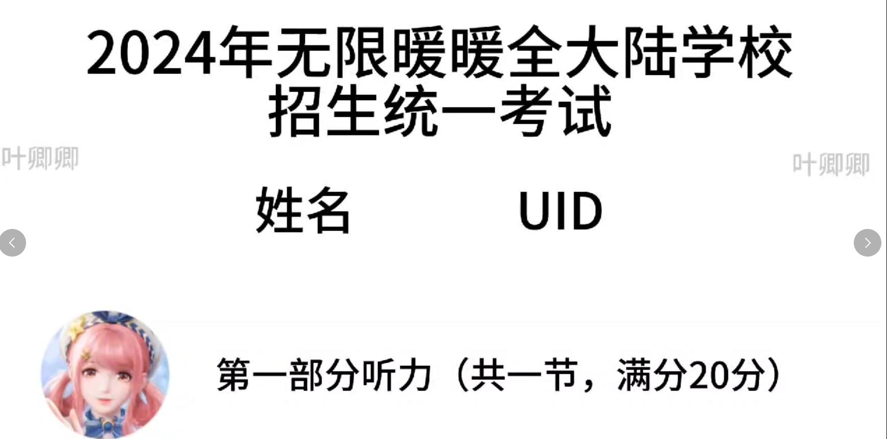 听力部分满分20分,答错不得分请将答题填写在评论区,月考开始 #无限暖暖全球公 #无限暖暖鸭梨没压力团 #无限暖暖攻略 #我要玩无限暖暖 #无限暖暖出发