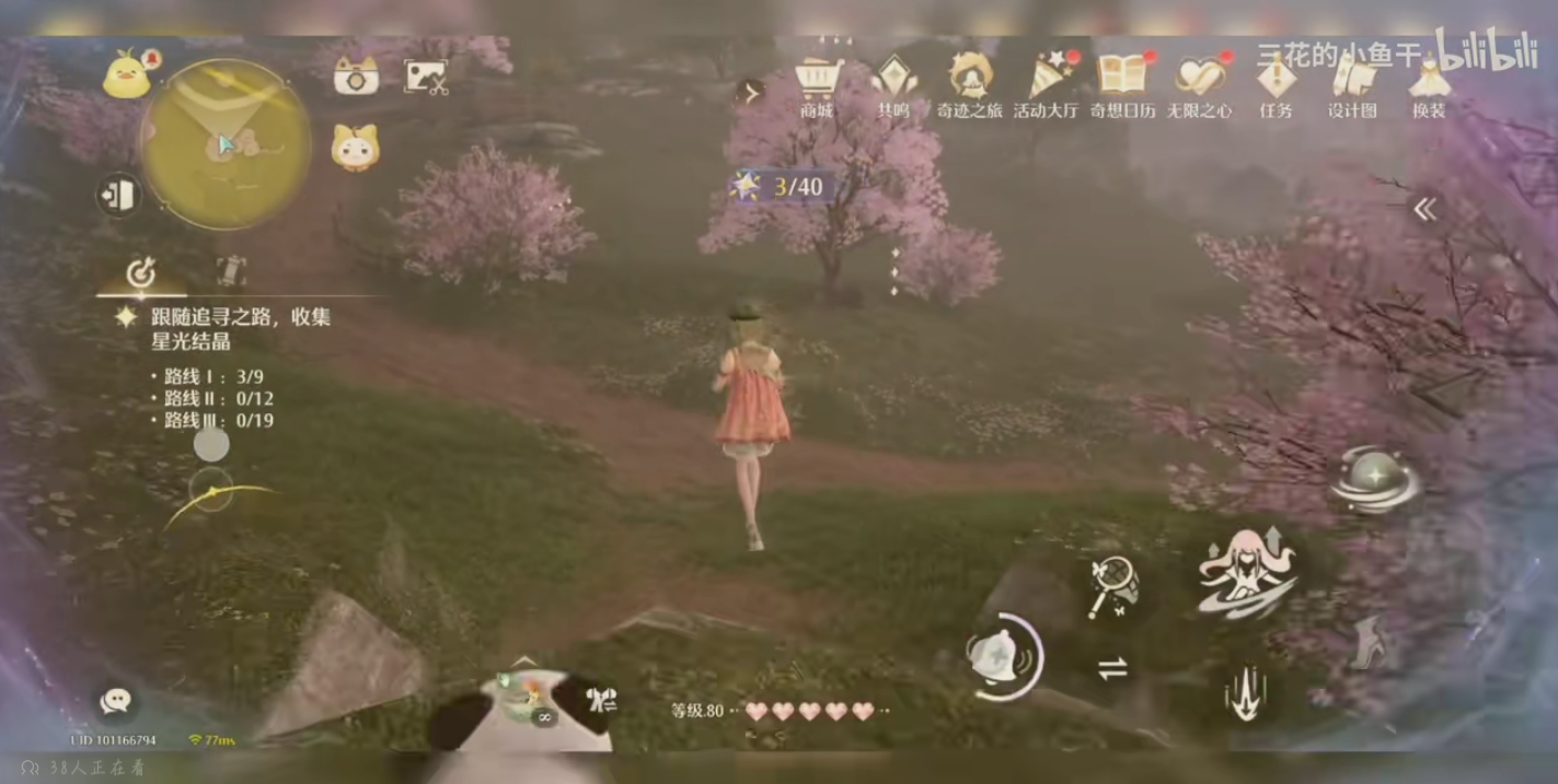 因为本人用的云玩,本来就糊,所以用的B站老师的视频截图1.你往旁边放那个粉紫色的框框干什么?那两个颜色救过你的命吗?其他地方还好,樱花林本来就粉,旁边框一档更看不见周围了。2.一打开画面亮度自动变低。你想干嘛?本来就看不见你还下调亮度。3.那个结晶不能摇铃,你让我在这个渲染下找本就难找的结晶还不给摇铃显示,没事吧?4.找结晶,行。你把结晶藏草堆里干什么你告诉我。我很闲吗去一个个打草堆,你以