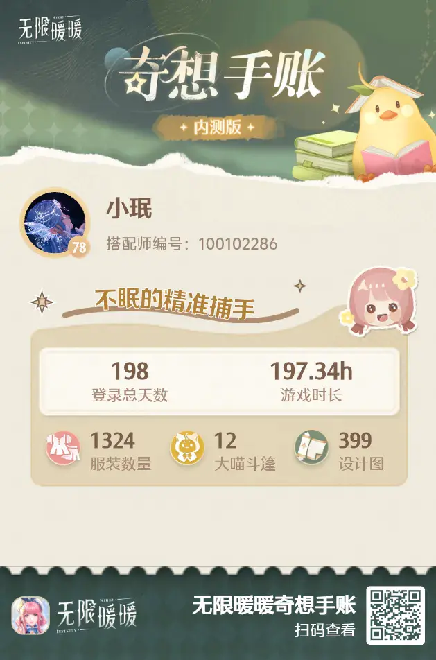 肝到不行的刚入坑萌新一枚~#无限暖暖奇想手帐 #无限暖暖寻访趣味称号