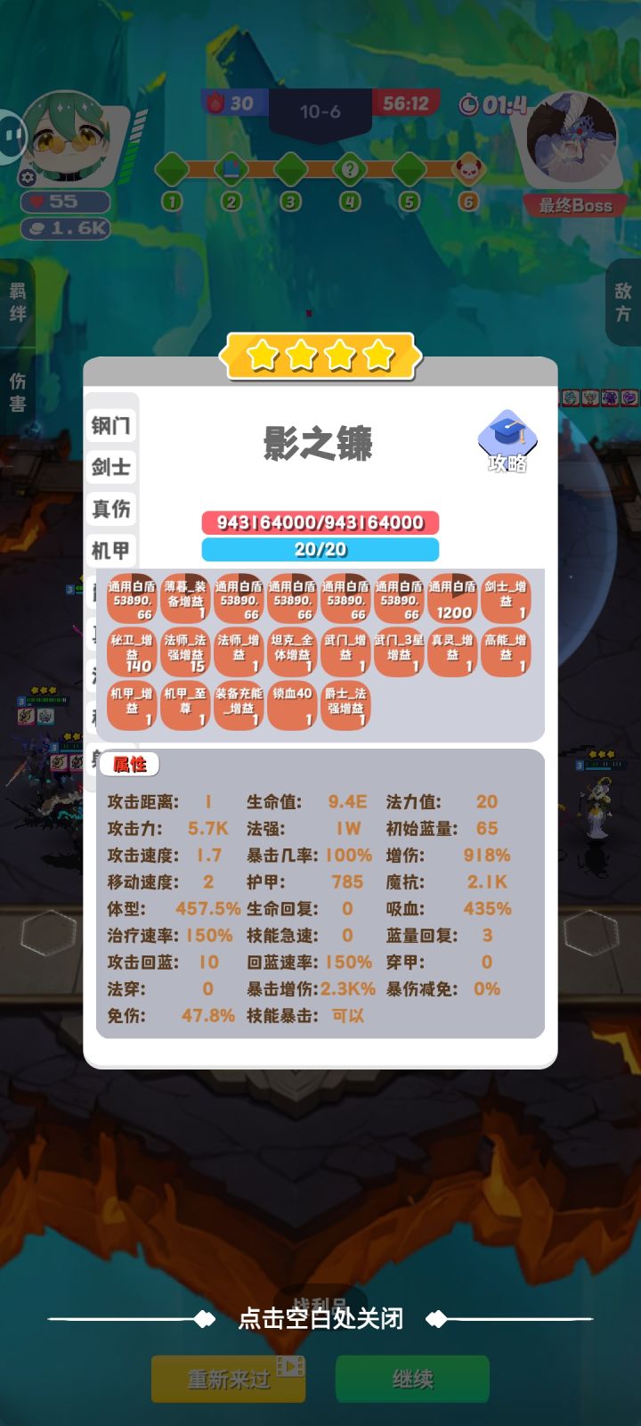 花了昨天一天加今天早上到中午吃完饭的摸鱼时间打的一把爬塔4星大大大大大大虫子+4星超模姐+4星影镰+4星蛄蛹者#再钢一把 #无限装备爬塔