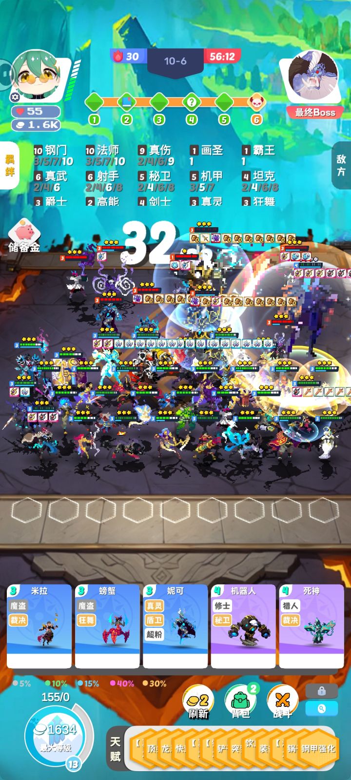 最终靠13个大妮蔻还是把4星小镰刀捏出来了第一次拿冠冕养双10羁绊(以前都是抓着一张牌养),这一仗打得太富裕了,全场追三星了钱还剩一千六,多得花不完#再钢一把 #无限装备爬塔