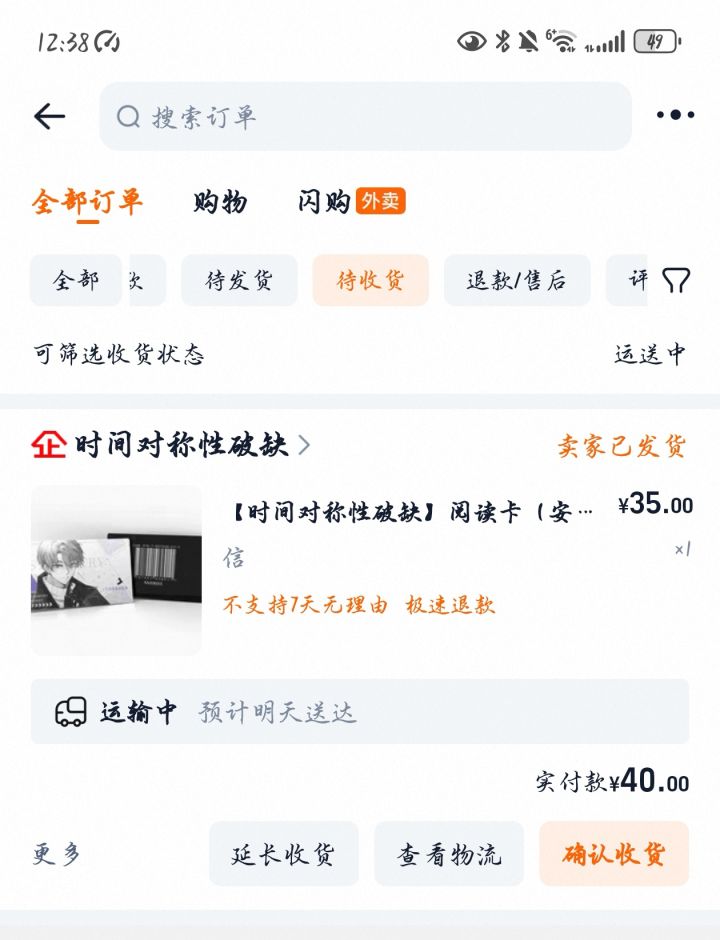 啊啊啊睡前看一眼淘宝订单,忽然发现待发货那一栏没有红色的小①了!!竟然提前一个月发货了QAQ一整个期待住了!什么时候全剧情啊!坐等正式上线!!!#时间对称性破缺 #时间对称性破缺阅读卡