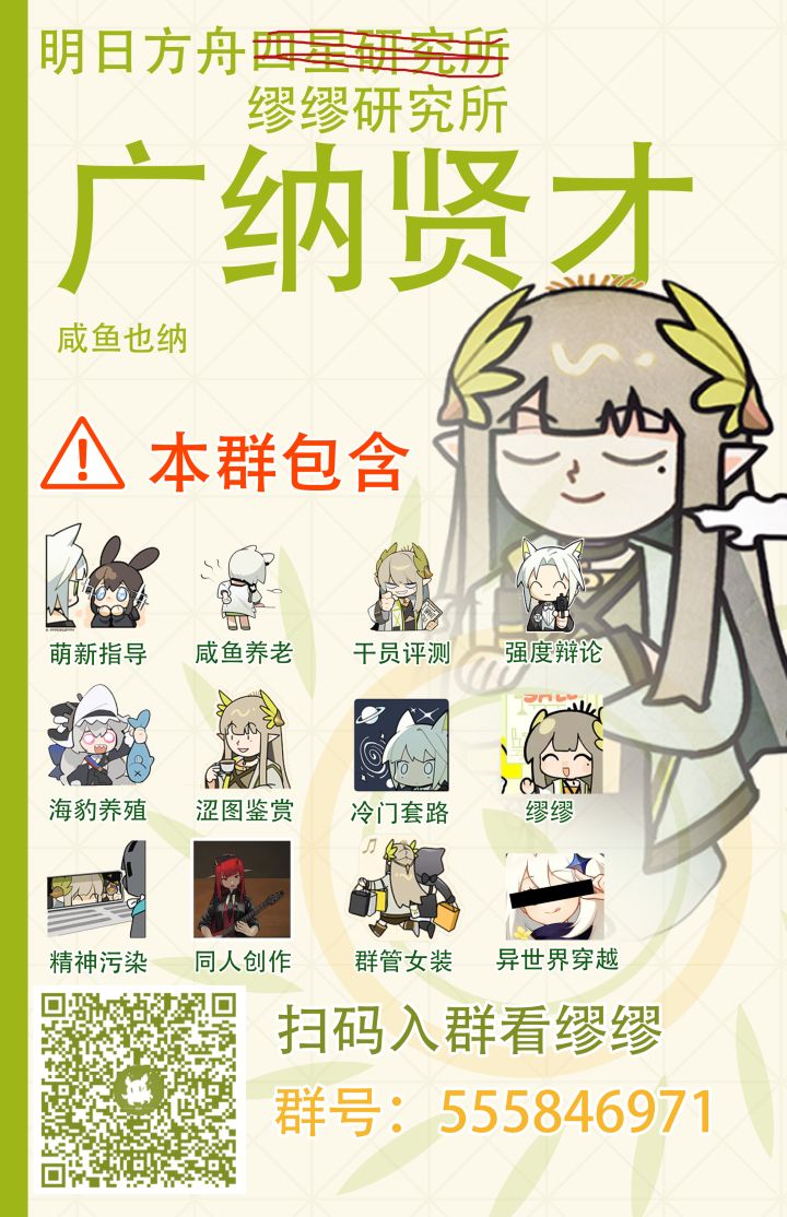 群不大,为各位萌新博士提供无微不至的热情帮助,为每位老玩家提供温馨的养生场所,重大节假日群内会有大小额红包,不多,一次春节也就发了八九百的样子,主要图个热闹~加入四星,呸,加入缪缪研究所喵,加入缪缪研究所谢谢喵。#明日方舟四周年#明日方舟四周年庆典#明日方舟#明日方舟交友#Arknights