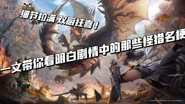 细节拉满,双厨狂喜!一文带你看明白那些联动细节!——————————前言:作为一名双修玩家来说,单论细节及诚意,本次怪猎联动是完全可以给满分的。鹰角这波态度真的是直接拉满!但对于没有接触过怪猎系列作品的博士来说,观感可能就没那么好了。作为一名被联动预告吸引趁着秋促史低入坑怪猎世界的萌新猎人,希望能够通过我浅薄的游玩知识来向各位介绍一番游戏中大量出现的那些怪猎名梗以及联动细节,让即便是没玩过怪