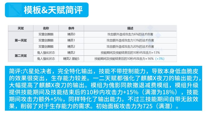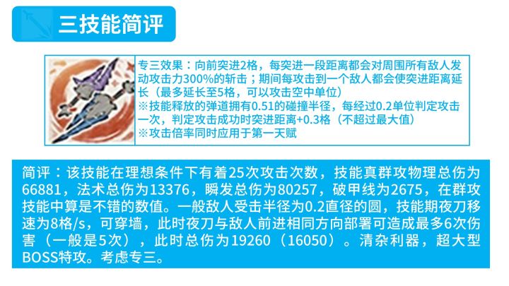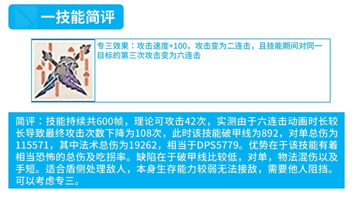 前言:因为前几天一直甲流,最近几天在忙拖欠下来的DDL,很多内容都还没有更新。最近有不少同学问我麒麟X夜刀到底应该专什么技能好,干脆也写一篇专栏说明一下好了总结一下吧:一技能不是期待的226循环而是2224循环,导致总伤大幅下降,强度大幅下降。二技能能起作用的大多数场合异德都可以替代,相比于异德感觉唯一优势就是低费以及出伤略快(减费模组)。三技能理论很强,但是只有对超大型BOSS和清杂有作用,定