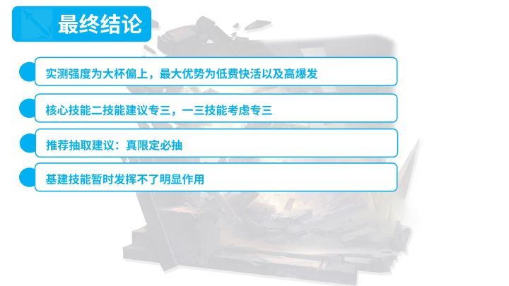 迅速专6后试了一下,最有趣的就是在肉鸽里,二技能落地切奇趣蛋不被晕瞬秒,三技能在宿主转圈的地图等左上角自爆虫凑够一列之后扔下去直接全清,而且不会被炸到,还能顺带清幽灵,可以说是非常好用了_(:τ」∠)_#我的罗德岛怪猎生活#明日方舟#明日方舟联动怪物猎人#明日方舟落叶逐火