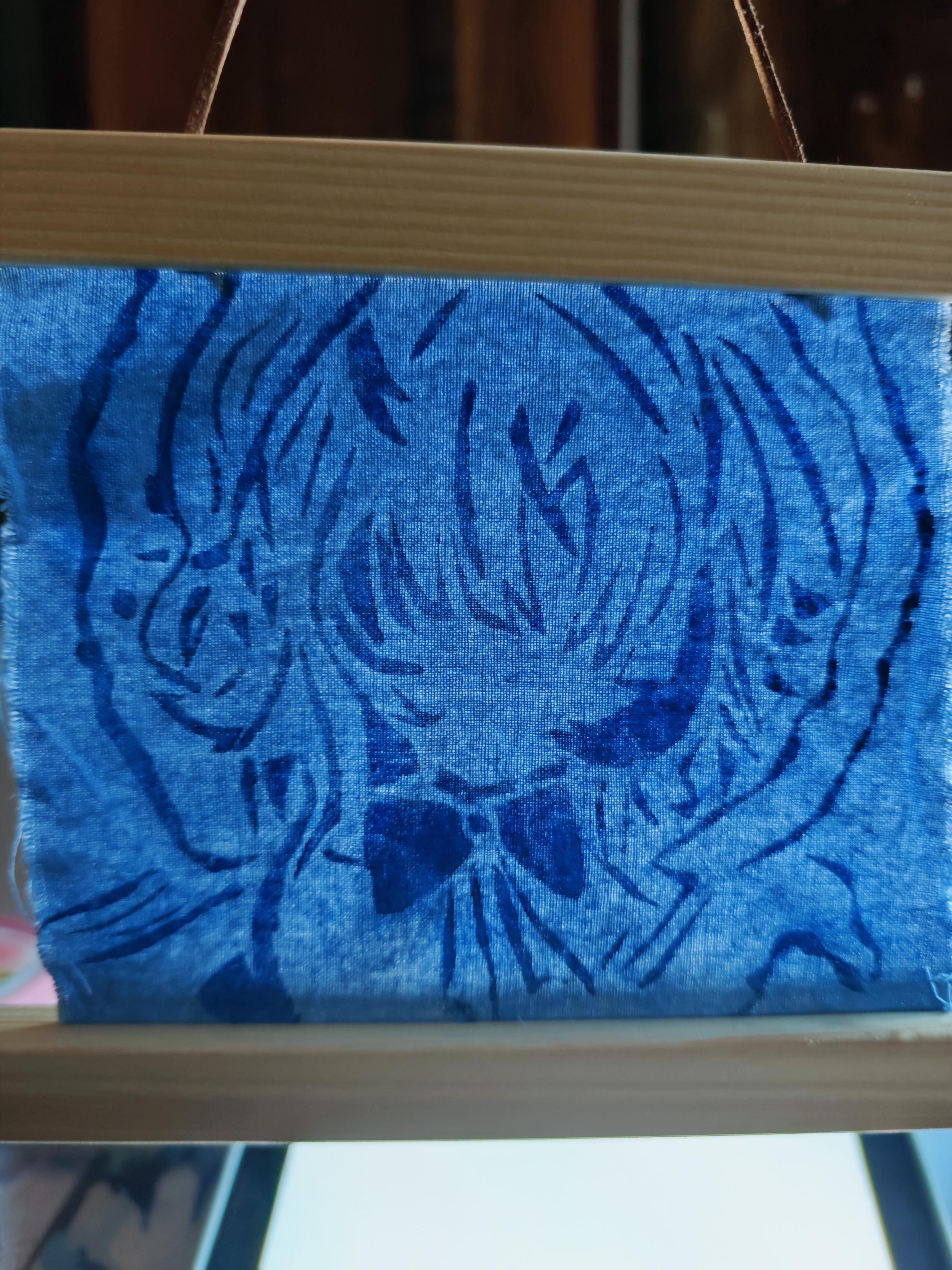 ……自作聪明先晒干再除糊,结果有糊的地方反而颜色更深。(我用的是防染糊而不是助染剂吧……) 算了,蓝蓝的还不错,再接再厉,接下来尝试只能用小片布了,不然还没成功我布就没了。 #星月夜