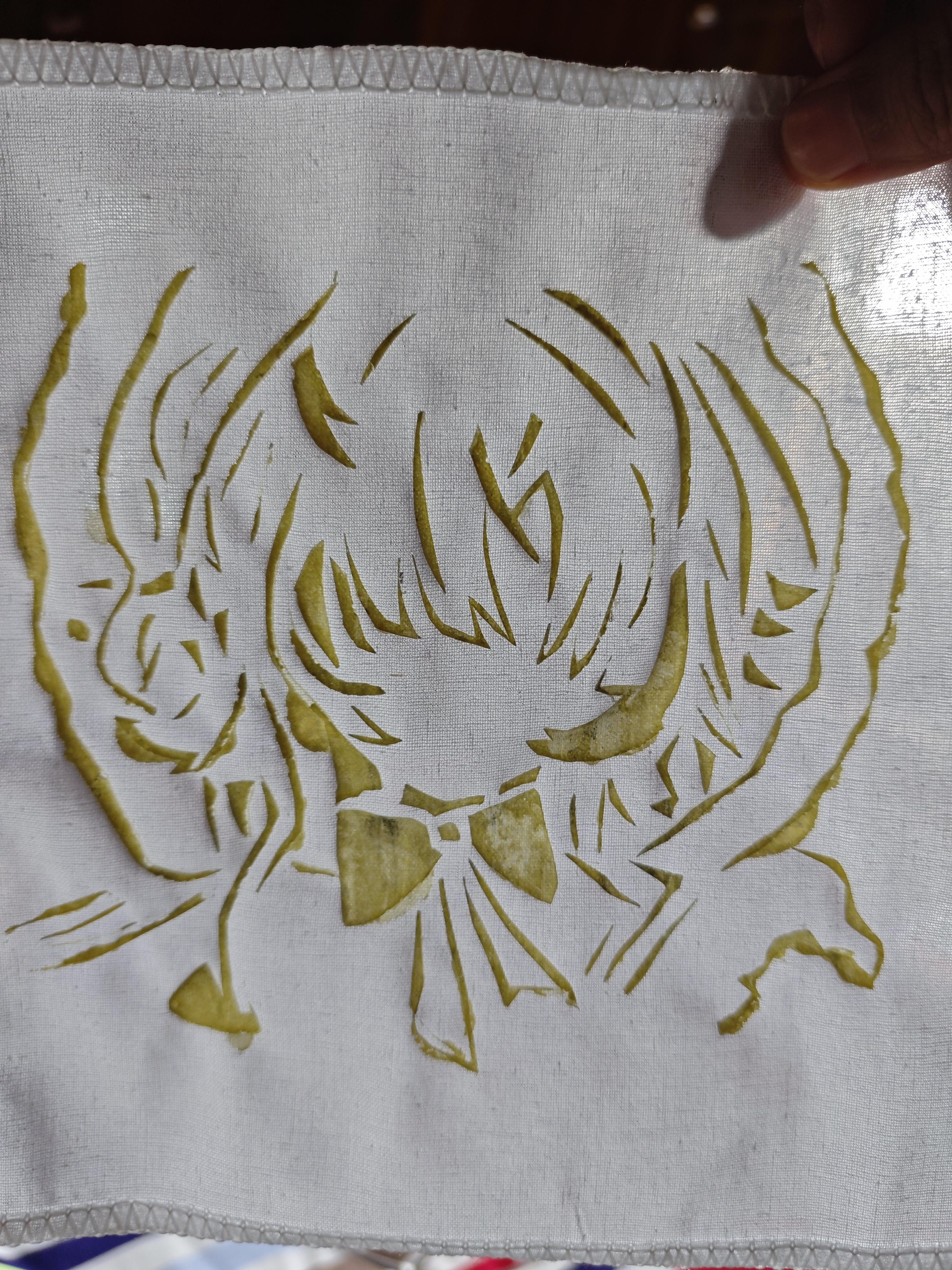 等糊干了就开始染,不过感觉不太可行的样子,糊有点薄,有些地方糊还不均匀,之后继续改善看看。 刻的歪歪扭扭是因为仅用作试验,等我找好手感再刻细致点。 二编:第一次尝试失败了,我好像知道哪里出问题了,现在还有一点痕迹的是背面,所以正面是因为我第一次漂洗没漂干净,就开始除糊,然后刮刀把颜色抹均匀了,心碎。 不过颜色还挺合适,等之后继续尝试。 #星月夜