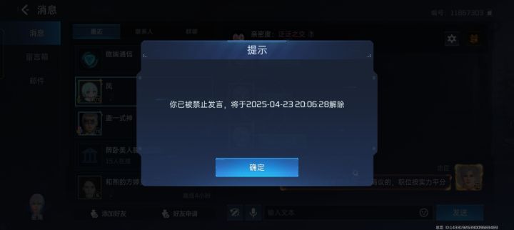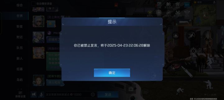 我就说这游戏有托吧!他激将你氪金,你还不能说他是托,你看嘛,禁言期间发不了任何消息,还追加禁言一小时,追禁了9次,今天刚解禁还没来得及发出去又给禁言了,咱就是说这游戏还能不能玩了?#星球重启 #星球重启春节新区