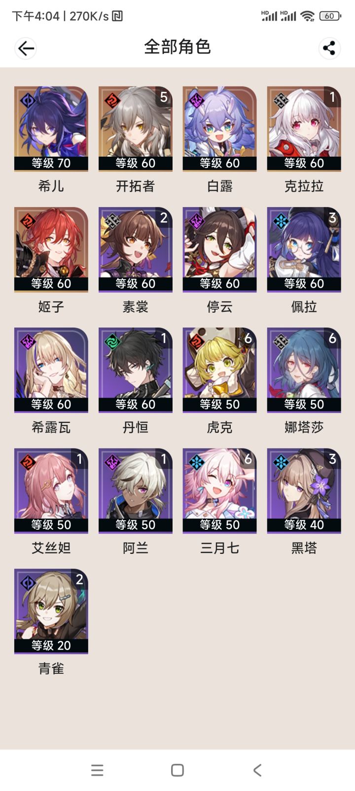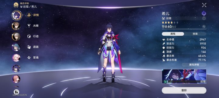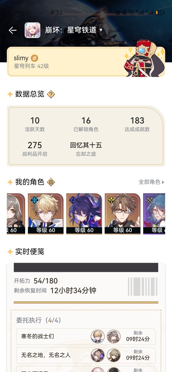 欢迎大家讨论,又争议可以提出来,我也是新手,需要学习!先说抽卡,我是通行证+月卡的微氪玩家,新手池50抽出杨叔(用了40票),up池80抽出希儿,专武池70抽出希儿专武,常驻池90抽出了个姬子专武,现在还剩4300星琼!(希儿,专武,老杨都只出了一个)这么算下来不算剩下的星琼,也就抽了290抽,用了280张票,现在只剩一张通票了,专票没有!进度方面,现在是41级,任务全清,除了每日任务看不到别